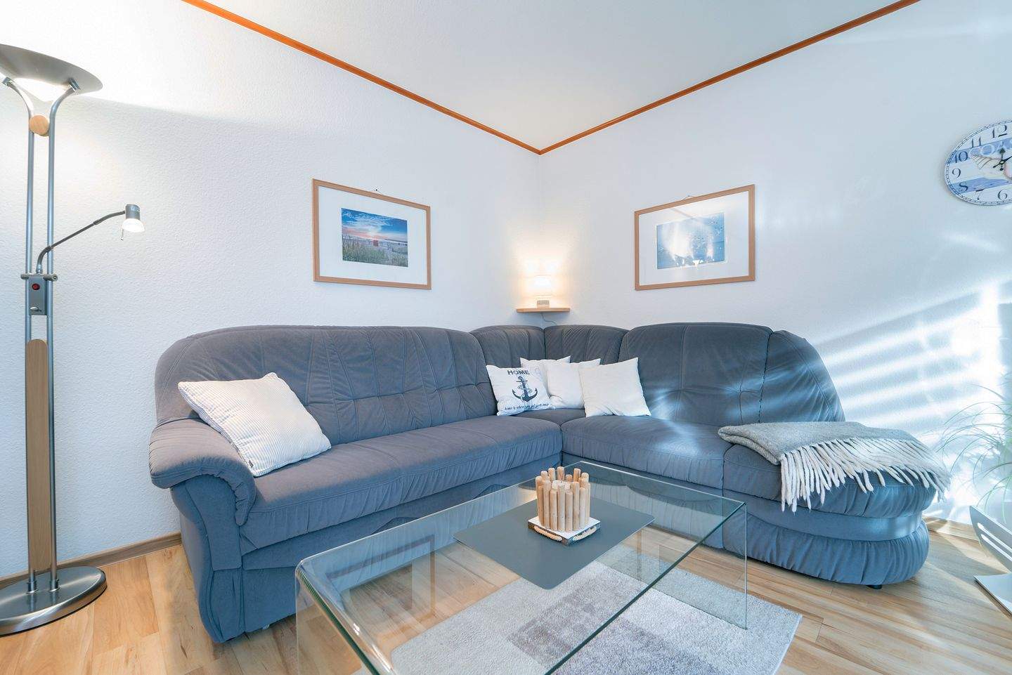 Das großzügige Wohnzimmer mit Flat-TV und Blu-Ray-Player sowie direkt angrenzendem Balkon liegt ruhig an einem Fußweg. In der voll ausgestatteten Küche finden Sie alles, was Sie für die Zubereitung von Mahlzeiten benötigen. Für die Nachtruhe stehen Ihnen ein Schlafzimmer mit Doppelbett (2x 90x200 cm) sowie ein Schlafzimmer mit Einzelbett, unter dem Sie noch ein weiteres Bett ausziehen können (je 90x200 cm) zur Verfügung. Die geschmackvolle Einrichtung der Wohnung lässt keine Wünsche offen.