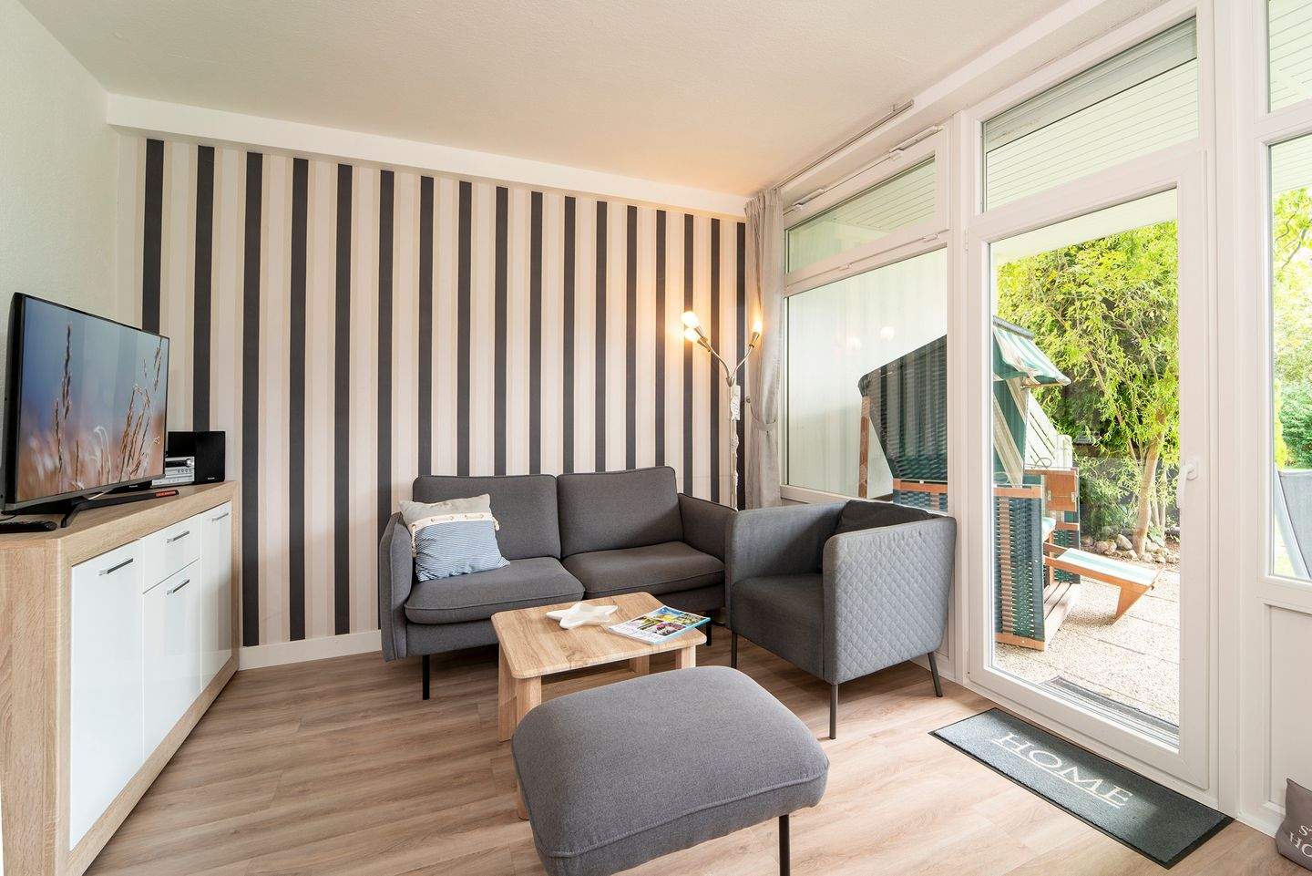 Die Wohnung liegt ebenerdig mit direktem Zugang zum Garten. In weniger als 10 Gehminuten erreichen Sie den Bäcker, den Strand oder den nahegelegen Wald. Der lichtdurchflutete Wohnbereich wird Sie begeistern. Harmonisch aufeinander abgestimmtes Interieur und moderne Technik erwarten Sie. Eine gemütliche Essecke sowie einen abgetrennten Schlafraum mit einem komfortablen Doppelbett (160x200 cm) finden Sie im Wohnbereich vor. Einen weiteren separaten Schlafraum mit Flat-TV und kleinem Doppelbett (140x200 cm) erreichen Sie vom Flur aus. Ein separates WC, eine separate Dusche sowie die voll ausgestattete Küche mit Geschirrspüler, Waschmaschine und Trockner - hier bleiben keine Wünsche offen. Genießen Sie die lauen Abende in Ihrem Strandkorb auf der Terrasse in absolut ruhiger Lage, Sie werden begeistert sein. Hier wird es Ihnen an nichts fehlen.