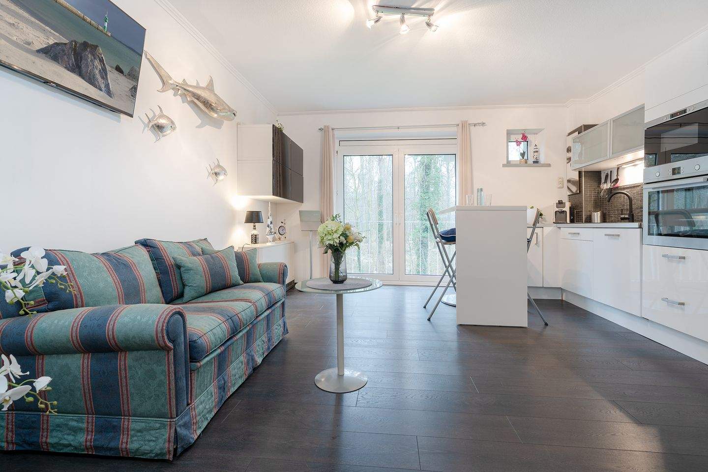 Ruhig und idyllisch am Ortsrand von Scharbeutz gelegen: kuschelige, ca. 25 m² große 1-Zimmer-Ferienwohnung im 2. Stock mit französischem Balkon und Blick ins Grüne für bis zu 2 Personen.