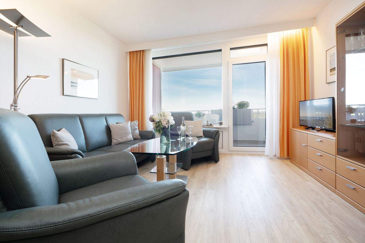 Die Wohnung verfügt über einen kombinierten Wohn- und Schlafraum, ein separates Zimmer mit einer Schlafcouch (160x200 cm) und eine gut ausgestattete Küche. Das moderne Duschbad hat einen niedrigen Einstieg, helle Fußbodenfliesen und einen modernen Bad-Design-Heizkörper. Von der Landseite aus haben Sie einen wunderschönen, ungehinderten seitlichen Ostseeblick fast bis nach Fehmarn. Auf Ihrem Balkon genießen Sie die Nachmittags- und Abendsonne. Die Sonnenuntergänge werden Sie begeistern! Des Weiteren verfügt diese Wohnung über eine große Auswahl an modernen Büchern, kostenfreies WLAN und über Außenrollläden.