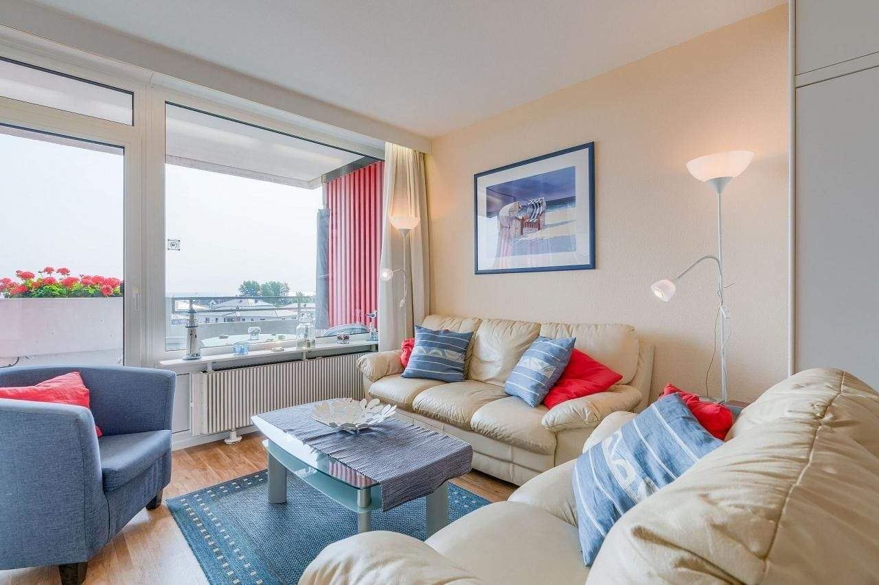 Der gemütlich und hell eingerichtete, kombinierte Wohn- und Schlafraum empfängt Sie mit 2 Sofas, einem Sessel sowie einem Flachbildfernseher. Ebenfalls vorhanden ist ein komfortables Doppelbett (2x 90x200 cm) für 2 Personen und ein Kleiderschrank. Im kleinen, separaten Schlafzimmer mit Fenster und Schlafcouch (140x195 cm) sind ein weiterer Kleiderschrank und ein Fernseher vorhanden. Die gut ausgestattete Küche mit Esstisch und das Wannenbad lassen keine Wünsche offen. Das Highlight ist jedoch für viele Gäste der Balkon mit einem fantastischen Meerblick. Der WLAN- und SAT-TV Anschluss sind selbstverständlich inklusive.