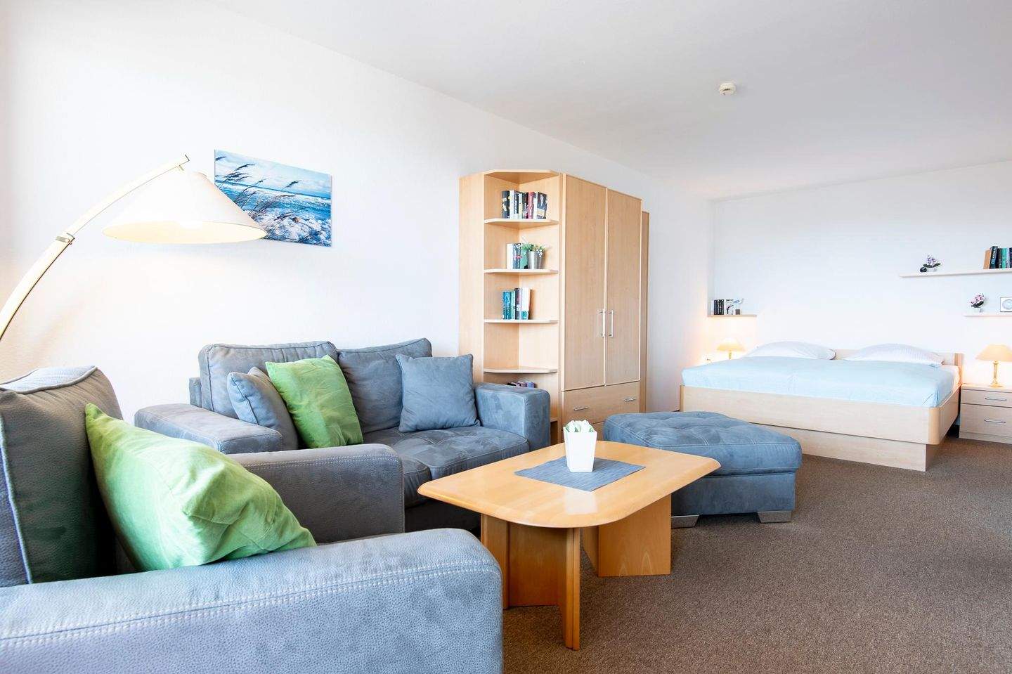 In dieser 2-Zimmer-Ferienwohnung können Sie Ihren Urlaub mit bis zu 4 Personen auf ca. 46 m² verbringen. Die Wohnung befindet sich in der 4. Etage der Apartmentanlage Berolina und verfügt über einen Balkon mit Meerblick.