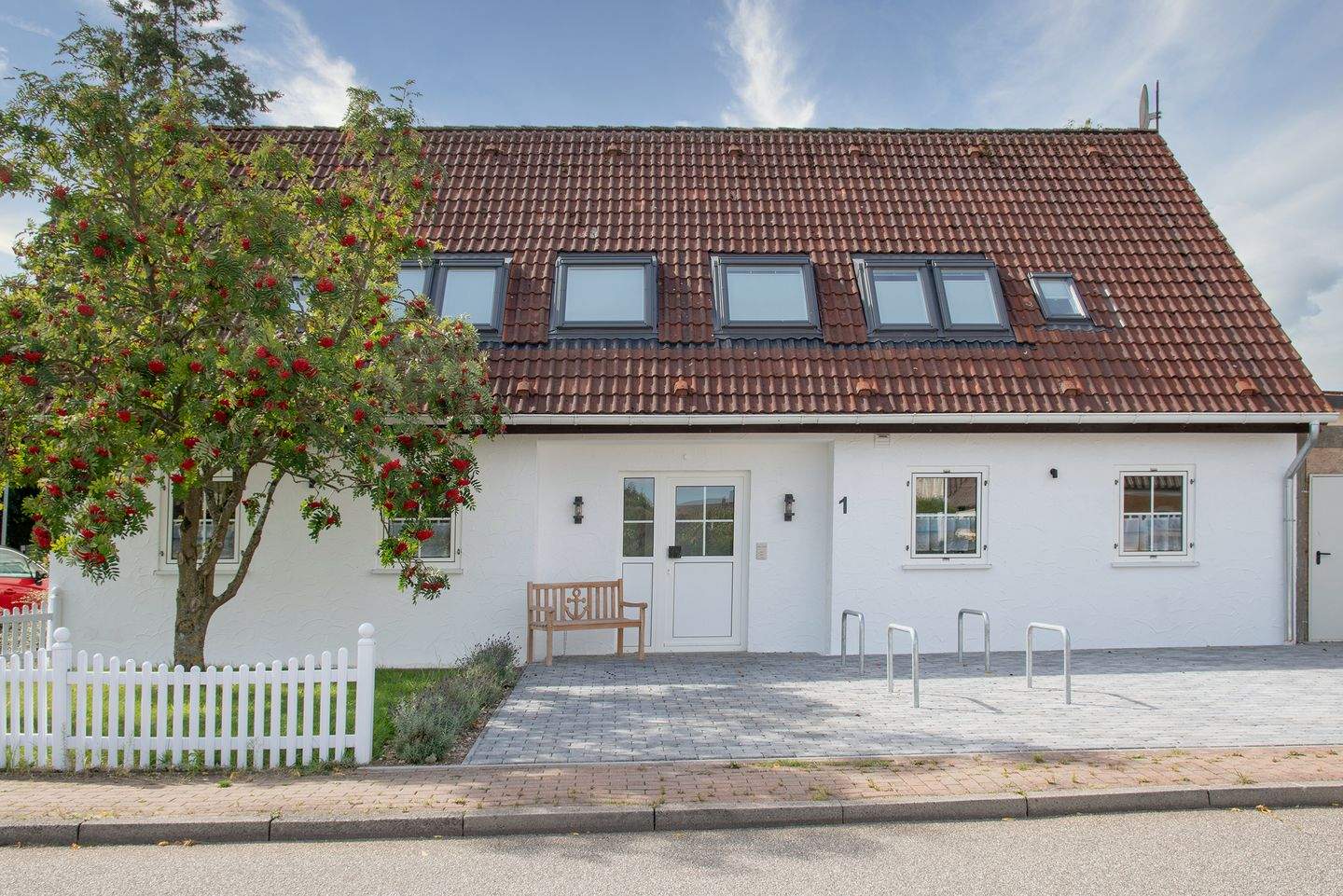 Der Wohn-/Essbereich mit offener Küche lädt zum gemeinsamen Essen, Fernsehen und erholsamen Urlaubsstunden ein. In der offenen voll ausgestatteten Küche finden Sie alles, um sich und Ihre Lieben kulinarisch zu verwöhnen. Vom Wohnbereich gelangen Sie auf die Terrasse mit Gartenmöbel, der perfekte Ort, um einen ereignisreichen Urlaubstag bei einem Glas Wein ausklingen zu lassen. Das angrenzende Gartenstück wird gemeinschaftlich von allen Bewohnern der Anlage genutzt. Drei Schlafzimmer und zwei moderne Bäder, befinden sich in der 1. Etage. Zwei Schlafzimmer sind jeweils mit einem Doppelbett (2x 90x200 cm) und Kleiderschrank ausgestattet. Das dritte Schlafzimmer verfügt über ein Einzelbett (90x200 cm). Die modernen und hell gefliesten Badezimmer, wovon eins mit einer Sauna ausgestattet ist, runden diese Ferienwohnung mit Dusche (Schwelle nur 2cm) und Fußbodenheizung ab.
