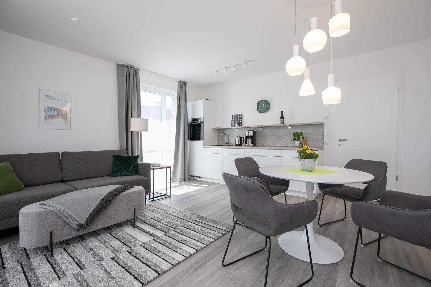 In dem 2020 fertig gestellten, eleganten und modernen Neubauobjekt mit insgesamt 7 lichterfüllten Wohnungen befindet sich dieses ca. 52 m² große 2-Zimmer Traumdomizil. Bis zu 4 Personen können in dieser Wohnung im 1. OG Ihre ganz persönliche Ruheoase schaffen. Dieses Feriendomizil ist barrierearm und eignet sich daher ebenfalls für Menschen mit Bewegungseinschränkungen.