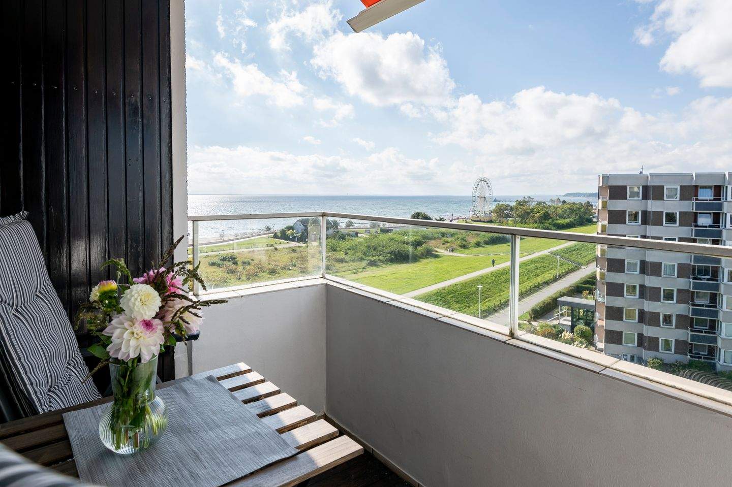 Der Wohnbereich erwartet Sie mit einem Flat-TV, gemütlicher Eckcouch und Essbereich und garantiert Ihnen gemütliche Stunden. Das Sofa wird im Handumdrehen in einen komfortablen Schlafplatz (140x200 cm) verwandelt. Der niedliche Balkon punktet mit seinem seitlichen Ausblick auf unsere wunderschöne Ostsee. Hier können Sie bei Meeresrauschen ein spannendes Buch lesen und die Abende relaxt ausklingen lassen. Über den kostenlosen WLAN-Anschluss bleiben Sie auch im Urlaub erreichbar. Sollten Sie nach einem langen Strandtag keinen Elan für einen Restaurantbesuch haben, können Sie sich in der kleinen Küche mühelos selbst bekochen. Im Schlafzimmer mit Kleiderschrank verspricht das große Doppelbett (2x 90x200 cm) angenehme Nächte. Im geschmackvollen Bad mit Eckdusche und Fön starten Sie erfrischt in den Tag.