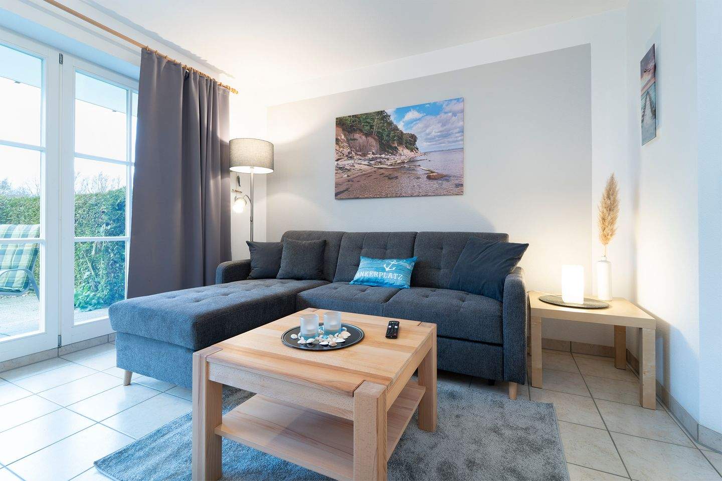 Diese Wohnung verfügt über eine voll ausgestattete Küche, in der Sie es sich im Urlaub gut gehen lassen können, wenn Sie keines der nahe gelegenen Restaurants nutzen möchten. Das innenliegende Vollbad besticht durch einen beheizbaren Handtuchhalter und bereitet Sie perfekt auf entspannte Nächte vor, die Sie entweder im angrenzenden Schlafzimmer (Doppelbett 2x 90x200 cm) oder im Wohnzimmer auf der Schlafcouch (120x200 cm) genießen können. Beide Schlafräume sind mit Verdunkelungsmöglichkeiten ausgestattet. Um das schöne Schleswig-Holstein-Wetter genießen zu können, gehen Sie entweder an den nur 100 m entfernten Strand oder Sie setzen sich auf der Süd-West-Terrasse in die Sonne.