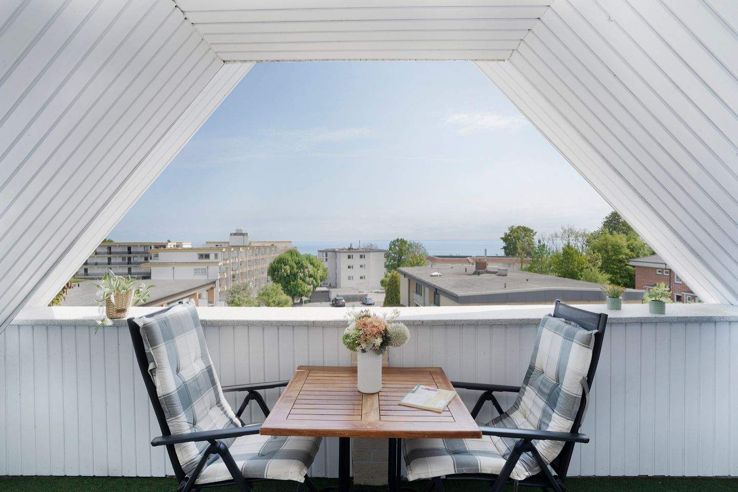 Genießen Sie den traumhaften Meerblick aus der 2. Etage und machen Sie es sich in dieser charmanten Wohnung gemütlich. Auf dem überdachten Balkon können Sie den Abend entspannt ausklingen lassen und den Alltag vergessen.