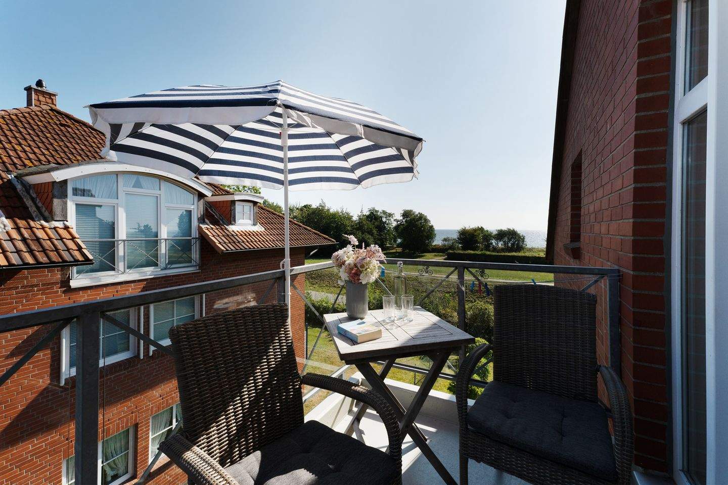 Traum-Lage: Schicke 2-Zimmer-Ferienwohnung in der 1. Reihe zur Ostsee in Kellenhusen für bis zu 2 Personen im Dachgeschoss (2. Stock) mit Balkon, einer Wohnfläche von ca. 49 m² – und Meerblick.