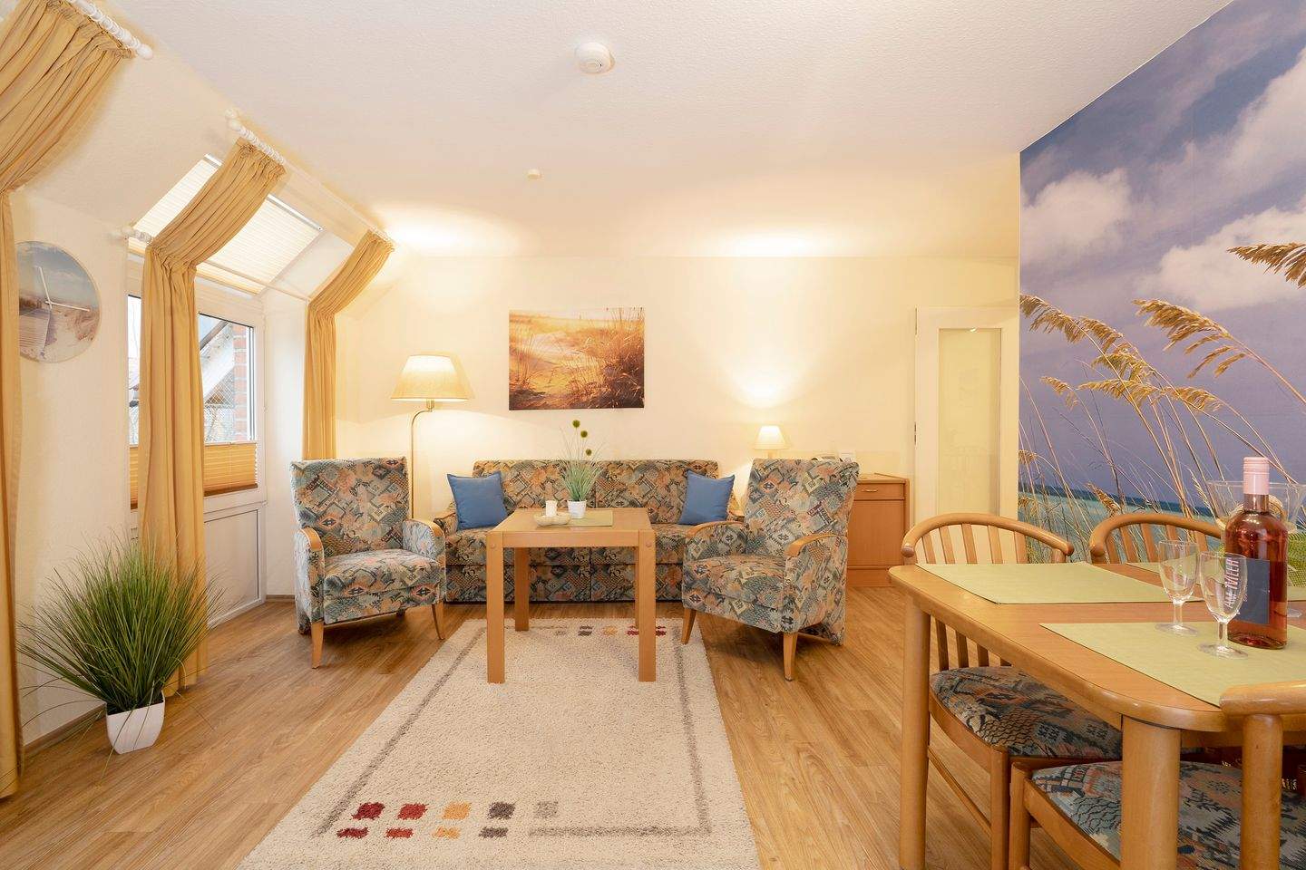 Gemütliche 3-Zimmer-Ferienwohnung (ca. 65 m²) in Kellenhusen für bis zu 3 Personen im 1. Stock mit Balkon.