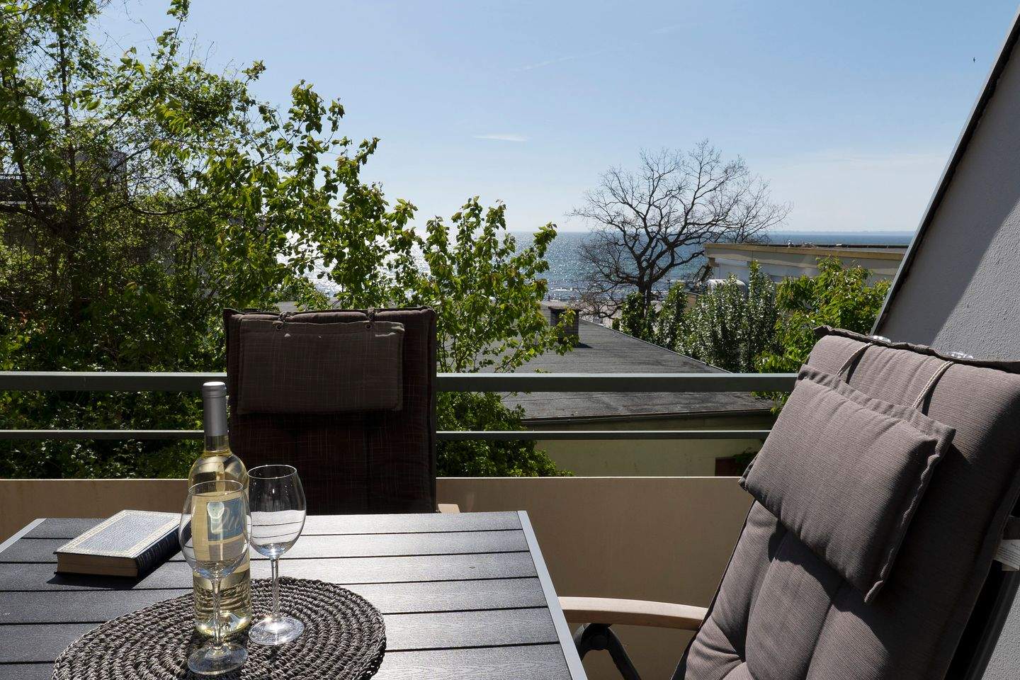 Ein traumhafter Meerblick vom Balkon und ein eigener Strandkorb am Meer - was will man mehr? Beides bietet Ihnen diese geschmackvoll eingerichtete Ferienwohnung in der schönen Ferienwohnanlage Miramar. Der Wohn-Schlaf-Ess-Bereich mit direktem Zugang zum Balkon lädt zum Verweilen ein. Lassen Sie Ihren Blick - je nach Jahreszeit - über das Meer schweifen und genießen Sie Ihre Auszeit. Die moderne, gut ausgestattete Einbauküche ist im Flur untergebracht und ermöglicht eine gute Selbstversorgung. Für die Nacht verspricht das bequeme Boxspringbett (160x200 cm) im Wohnbereich angenehme Träume. Morgens starten Sie dank des komfortablen Duschbades erfrischt in den neuen Tag.