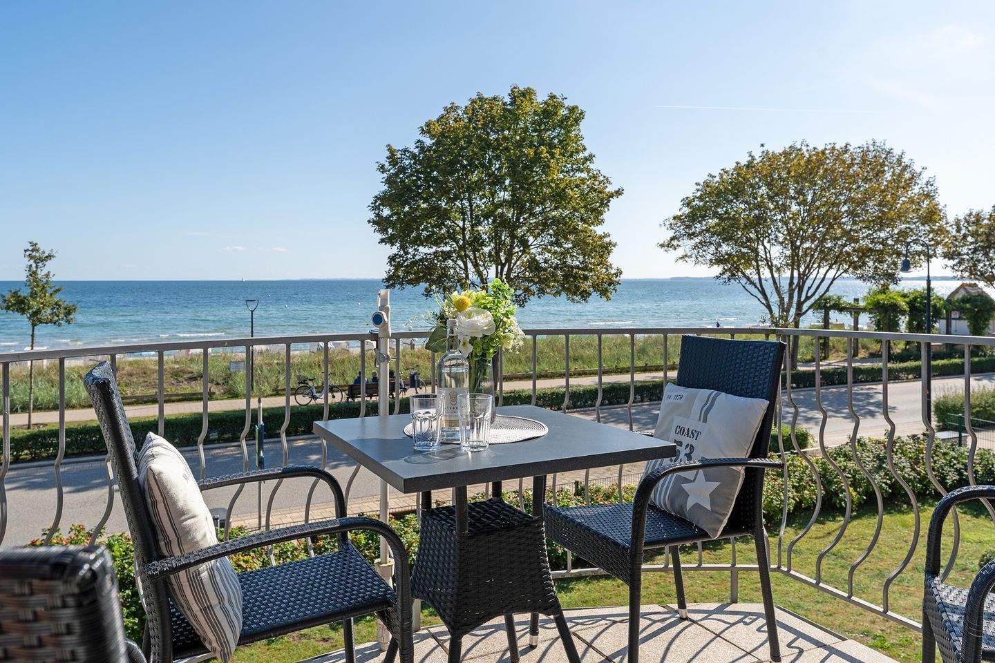 Diese schöne Ferienwohnung im gepflegten Appartementhaus "Strandresidenz" befindet sich in traumhafter, unmittelbarer Strandlage direkt an der Strandallee in Haffkrug. Nur wenige Schritte bis zum weißen Ostseestrand - vom Balkon aus hören Sie die Wellen rauschen und haben einen traumhaften Blick auf die Ostsee! Der nächste Bäcker für die frischen Frühstücksbrötchen liegt in Fußmarschnähe und auch zu diversen Restaurants und Cafés haben Sie es nicht weit. Top Lage für Ihren Ostseeurlaub!