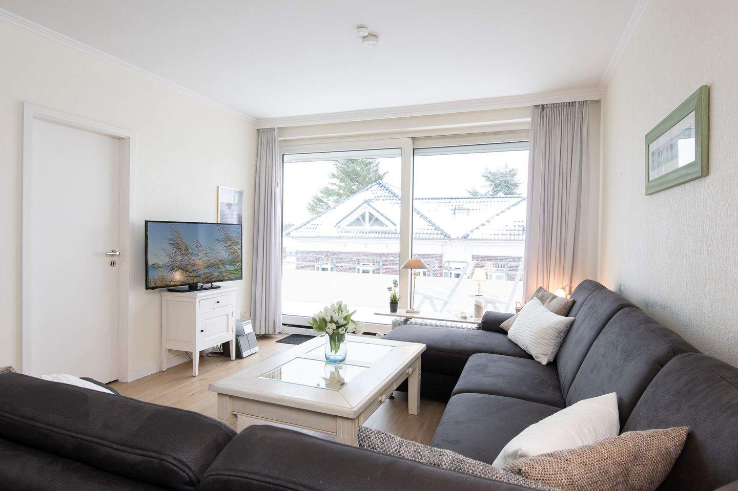 Vom Eingangsbereich aus gelangen Sie in Ihre Dusche mit WC und Ihr gemütlich eingerichtetes Wohn-, Esszimmer mit schicker, voll ausgestatteter Küchenzeile. Hier wurde ein komplett neuer, heller Vinylfußboden verlegt und ein neues gemütliches Sofa lädt Sie zum Relaxen ein. Vom Wohnbereich gelangen Sie direkt in Ihr Schlafzimmer mit zwei Einzelbetten (je 90 cm breit). Ebenso gelangen sie von dort aus auf Ihren großzügigen Balkon. Von Ihrem großen Balkon, der mit entsprechenden Möbeln ausgestattet ist, schauen Sie auf das bunte Treiben in Grömitz.