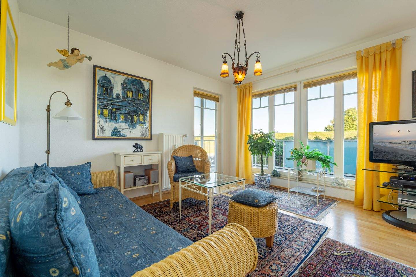Das separate Schlafzimmer ist mit komfortablem Doppelbett (2x 90x200 cm) und TV ausgestattet, Vorhänge sorgen für angenehme Verdunklung. Das moderne Badezimmer begeistert mit Annehmlichkeiten wie Dusche, beheizbarem Handtuchhalter und Föhn. Lassen Sie entspannt die Tage auf Ihrem Balkon ausklingen - so fühlt sich Urlaub an!